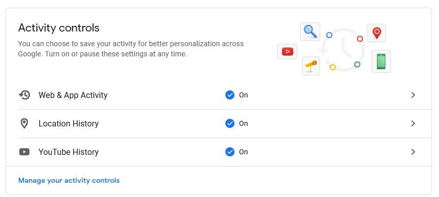 Most of the time, each link will direct you to a different page across Google’s service stack with similar options to pause historical data gathering, and manage the data that has already been gathered, just like the options we’ve already covered.