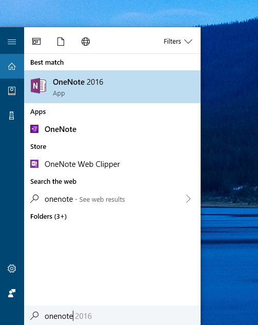 OneNote 2016 will continue getting support from Microsoft for a little while, but the main focus for the OneNote app in the future will be the application that comes bundled with Windows 10. You might already have it installed on your computer. To find out, click on your Start menu and type onenote. You’ll see a couple of options: OneNote 2016 and OneNote.