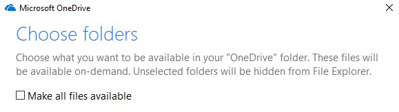 You should now be able to select all the files you want to see. Press OK to start syncing your files with Windows 10.